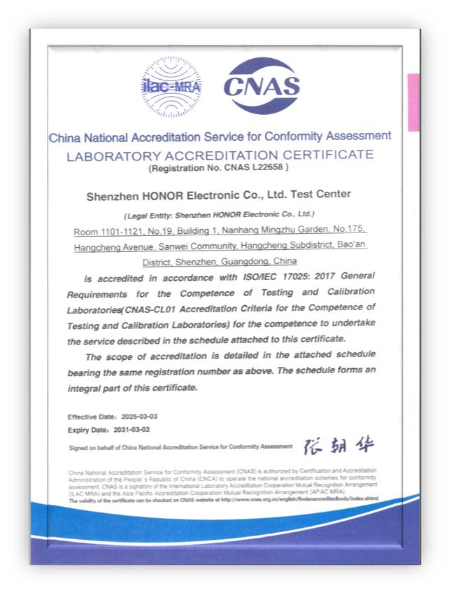 In 2025, the laboratory was awarded the national CNAS laboratory accreditation certificate, and its testing capabilities and management system have reached the international mutual recognition level.